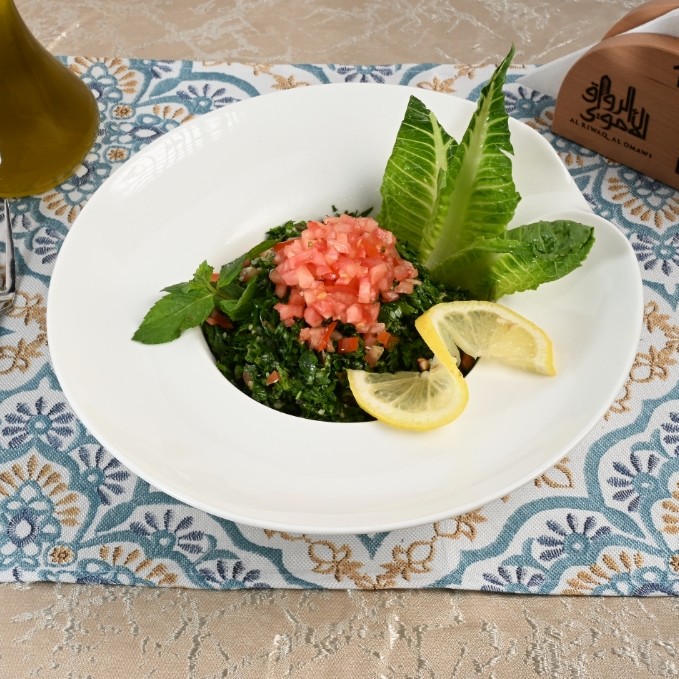 التبولة هي سلطة سورية شهيرة، تتكون بشكل رئيسي من البقدونس المفروم ناعماً مع الطماطم المفرومة، البصل ، البرغل الناعم، وعصير الليمون وزيت الزيتون