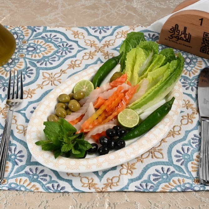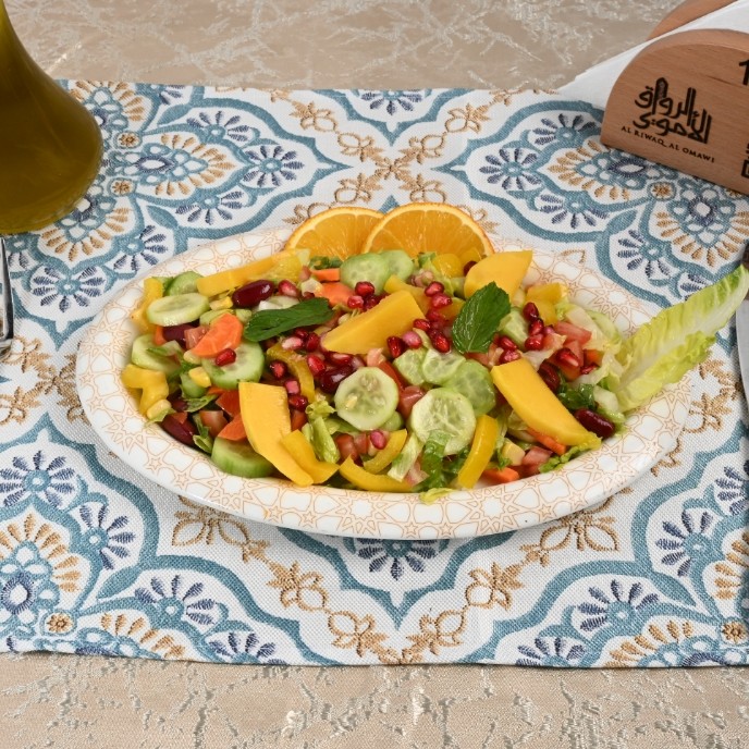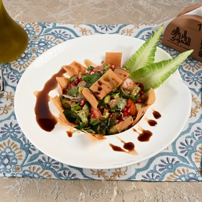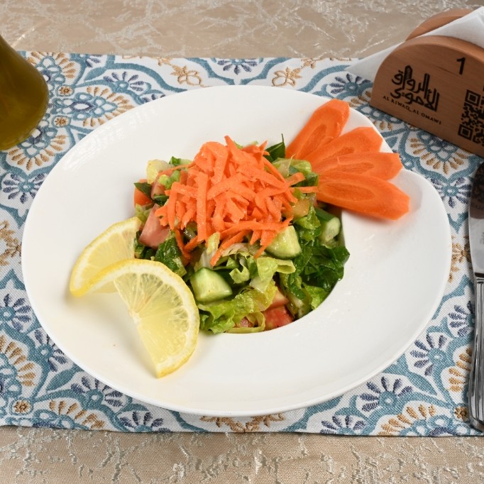 السلطة الشرقية غالباً ما تكون مزيجاً من الخضروات مثل الطماطم، الخيار، البصل، والفلفل، مع توابل شرقية وتتبيلة من زيت الزيتون وعصير الليمون.