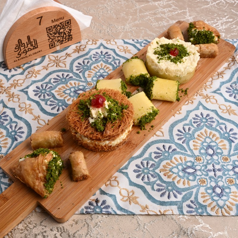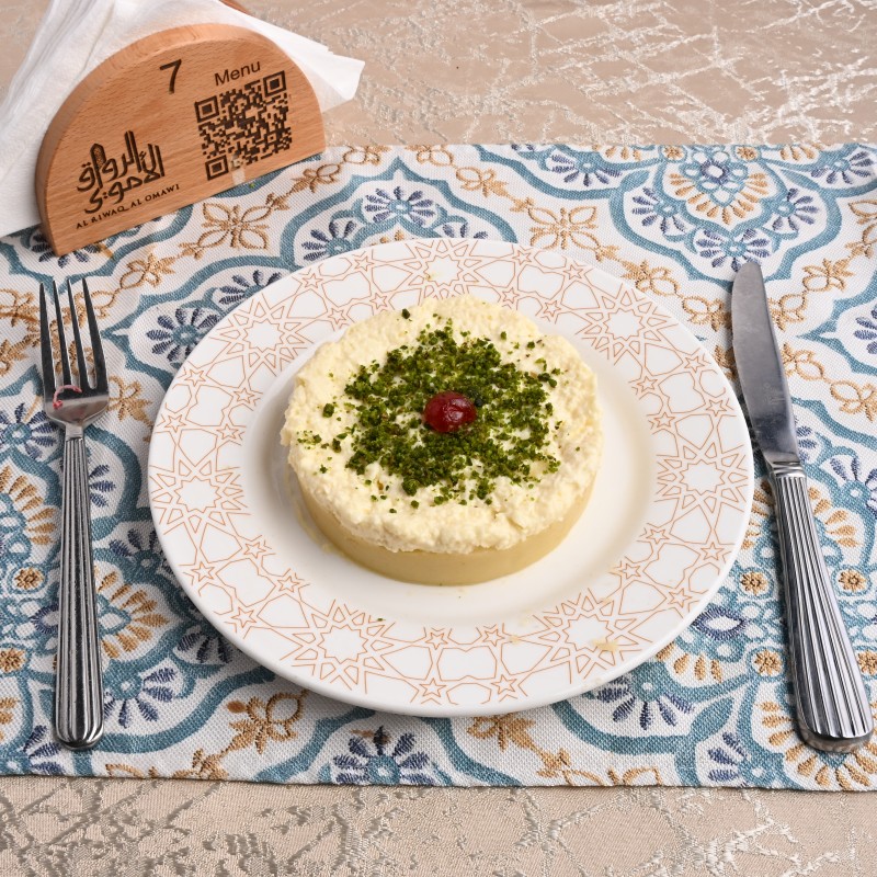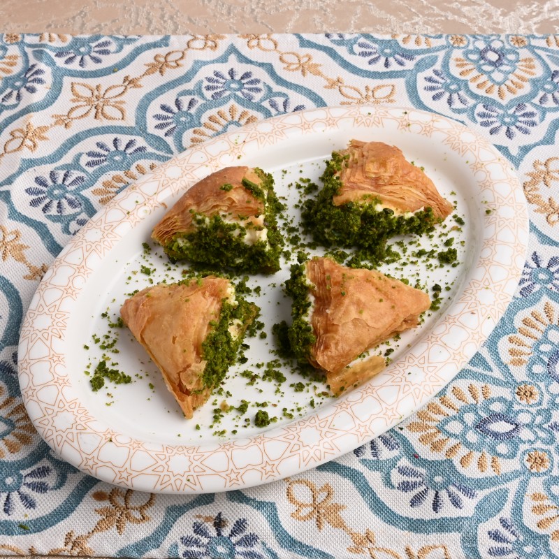 تتكون من عجينة البسبوسة (سميد) مع إضافة المكسرات مثل الفستق أو اللوز، وتُقدم مع القطر.